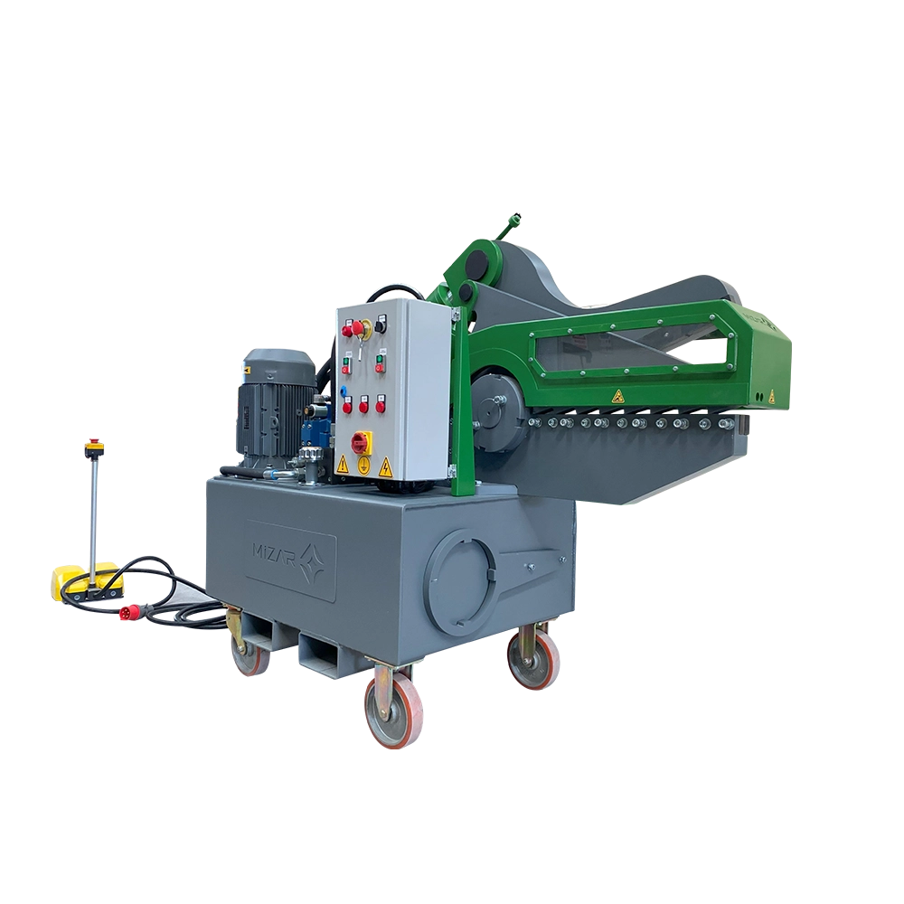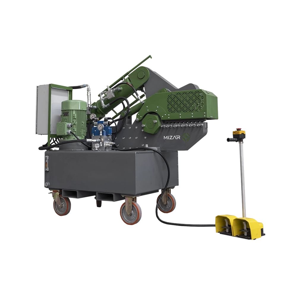 MIZAR ALS is designed for the hydraulic cutting of scrap cables and metals. The surface of the cylinder shafts is induction-hardened and chrome-plated for long-lasting performance. MIZAR ALS is equipped with specially processed tool steel blades and a Bosch Rexroth hydraulic unit. All electrical and electronic components are Siemens brand. Our products are manufactured and certified in accordance with CE and EAC standards.
