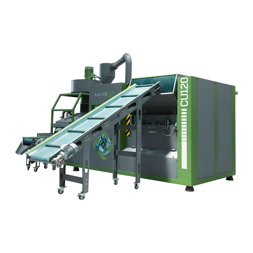 The CUA Series efficiently separates the internal and external components of cables for recycling. The integrated system, consisting of granulation, separation, and fan units, effectively shreds and separates 99.6% of cable components. Materials can be fed manually via a conveyor belt or automatically with the SSH Series Pre-Shredding Machine equipped with smart PLC software. Its compact structure and user-friendly PLC touch-screen control panel make management easy. The CUA Series enhances durability with high-quality components and is CE-certified. Available in three models: CUA S3, CUA M3, and CUA L3.